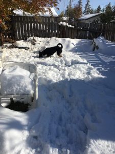 We finally got some sunshine and warmer temperatures yesterday, so I took Princess out so she could play in the snow. She had a blast, running and hopping around, chasing snow balls tossed her way, and shoving her face right into the deeper parts to see if there was anything interesting. Her puppy-ness definitely got released, and it was a real joy to watch her playing and having fun.
