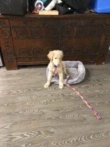 This puppy is highly intelligent, super inquisitive, playful, loving, and most importantly, she is calm under pressure. If Spencer is expressing vocally, she checks on him but does not become excited or panicked. When the door bell rings or someone knocks, she’s first at the door [that will be changing] but she doesn’t bark to alert. She’s actually a very quiet little girl…