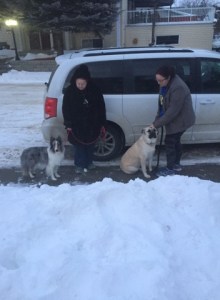 Last night, I took Skylar over to a friend’s home to work her around their kids and their large dog, Lilo, who is about 10 months old, very friendly, and nearly twice Skylar’s size. While Kim managed Lilo, I had the kids play in the snow and make all the noise kids make when they’re having fun. While they did that, I walked Skylar back and forth, allowing her to stop and watch for a few seconds when she felt curious before moving forward again. We did this several times, and then I had Kim pass by with Lilo several times. We did this for about half an hour before Lilo started pulling up her feet because they were getting cold. Each time we did the exercise, I brought Skylar a little bit closer to Lilo. By the end of the exercise, Skylar was able to handle being near Lilo without becoming reactive. She even extended her nose to one of the kids, who was laying on top of a snow pile after jumping around and making a lot of noise only a couple of minutes earlier.