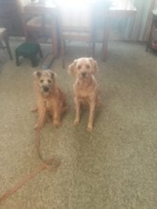 Thanks to lots of help from Glimmer, Amber did a pretty good job this morning practicing look/watch me, sit, sit-stay, down, down-stay, and place: