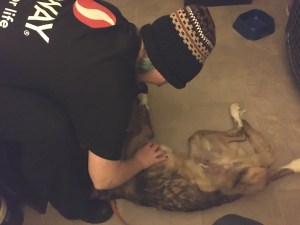 Though I’ve been conditioning him to the treadmill when it’s off, I didn’t know how Roko would feel about it being turned on. He really surprised me: When it started moving, he moved along with it, trying to figure out the right rhythm and balance himself at the same time. He didn’t stay on it for very long, but he tried, and that was what mattered. And, he came back a few times on his own to do it; he even tried to get on it while it was moving.