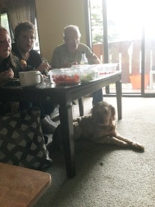 Can you trust your dog to leave food alone and stay out of the way – even when the food is really close? These photos were taken during dinner on Father’s Day. As you can see, Glimmer knows exactly how to behave around food – even when it’s very close to her. If you want your dog to learn and practice proper food etiquette, drop me a line; I can help! 🙂