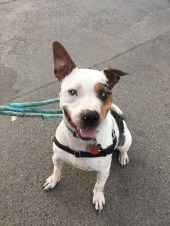 Seven months ago, you came into our home scared, mistrustful, unpredictable, and dangerously food aggressive. You wolfed your food at what seemed like close to light-speed, and you had such severe kennel anxiety that even a few minutes of being in it made you potty in it. Walking you was often very difficult; you were in a new environment and you were so anxious and nervous that you couldn’t relax. Playing with you – especially with a toy – was out of the question; you didn’t know what play was. To you, it was all about doing whatever you had to do to get the prize – including biting.